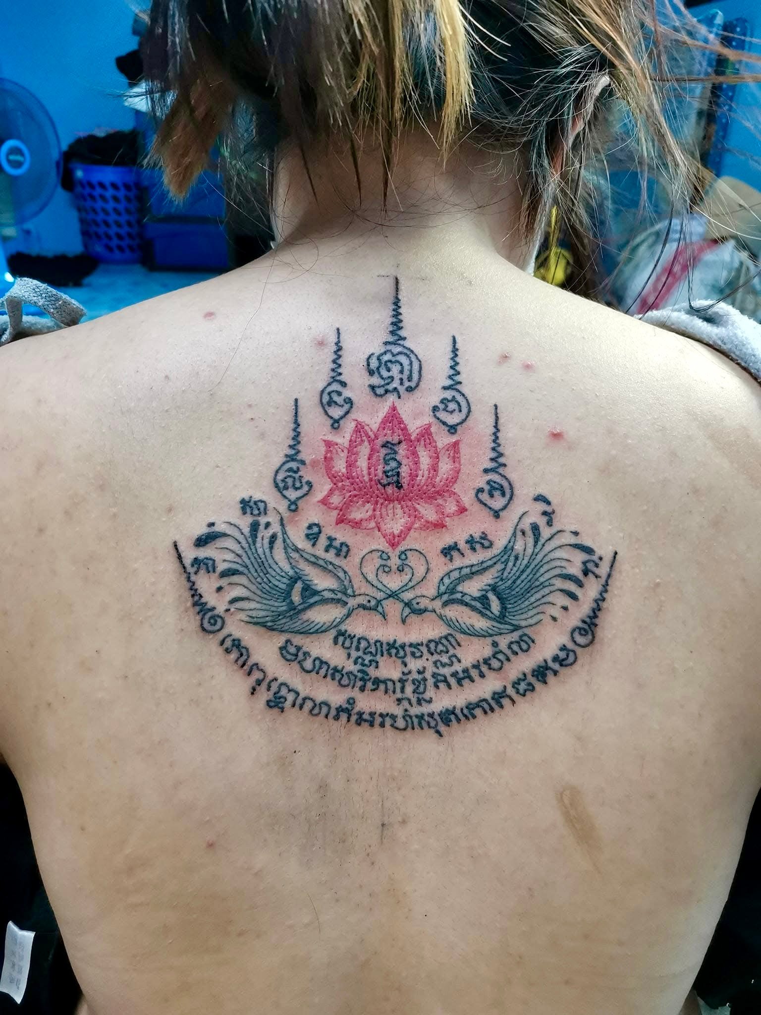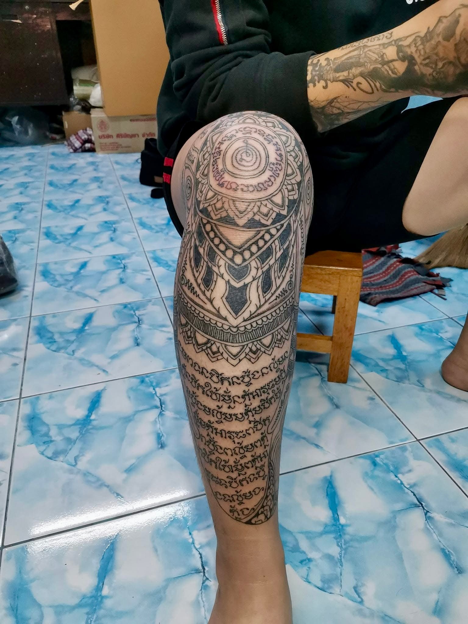 2. Personal Teaching Style: Ajarn Jack is described as having a very humble, patient, and spiritual approach to his work. Many people who visit him for sak yant tattoos note that he takes time to explain the meaning behind the tattoo designs and helps his students understand the spiritual significance of their new markings. He’s known to be very thorough in explaining the rituals that come with receiving a sak yant and may guide recipients on how to live in accordance with the spiritual principles tied to the tattoos. This guidance can be as much about karma, meditation, and Buddhist values as it is about the tattooing itself
